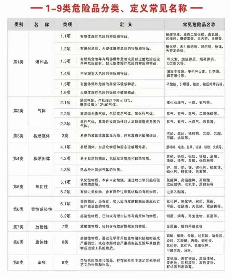 1-9類(lèi)危險(xiǎn)品分類(lèi)、定義常見(jiàn)名稱(chēng)